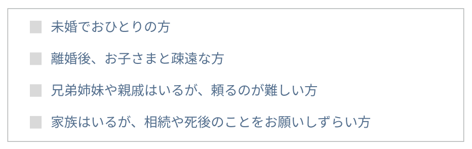 配偶者やお子さまがいない場合の相続には、一般的な相続とは少し違う準備が必要です。