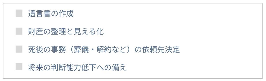 おひとり様相続では、「相続」だけでなく生前から死後までを一体で考えることが重要です。