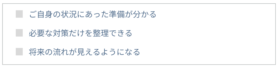 これらを無理なく整理することで、将来への不安を安心に変えることができます。